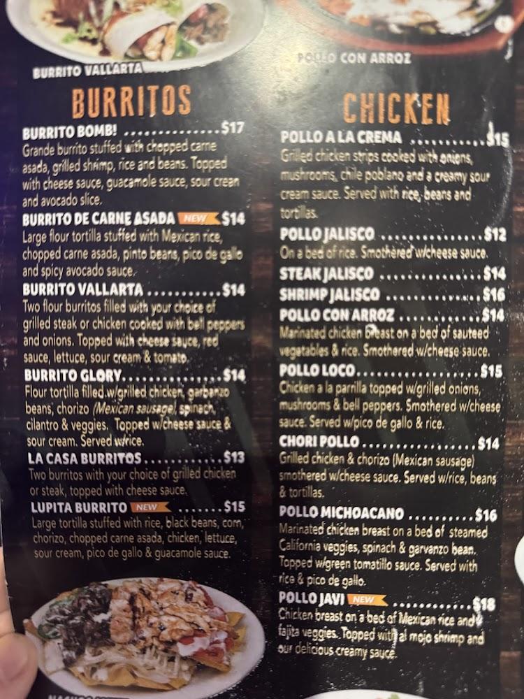 Craving tacos? The variety is impressive, with options ranging from grilled chicken to chorizo. Noteworthy selections include plates like 'burrito de carne asada' and 'enchiladas supremas.' Every dish bursts with flavor thanks to authentic preparations. Don't forget dessert! Indulgent sweets like 'red velvet cheesecake' wrap up the meal perfectly.